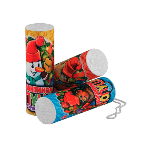 Хлопушки "Супер" производства ТСЗ (Троицкого Снаряжательного Завода) даже близко не напоминают те, любимые с детства, но, если честно, не самые лучшие советские хлопушки, из которых при выстреле вылетали бумажные кружочки, явно изготовленные из цветных журналов. Да-да, там даже был типографский шрифт!!! И это, с позволения сказать, конфетти и не думало кружиться в воздухе, оно быстро и без лишних сантиментов падало на ковёр. А ещё, пусковой шнур после рывка нередко оставался в руке, а хлопушка изо всех сил делала вид, что она никакая не хлопушка! Хлопушки «Супер» лишены всех этих недостатков! Надёжные, безопасные, заполненные ярким, блестящим и воздушным конфетти, они принесут праздник в любую компанию!